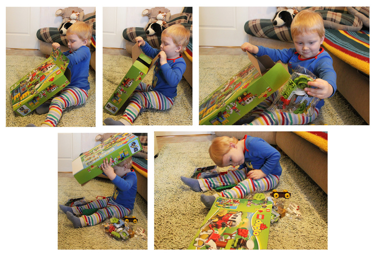 Те детальки которые были упакованы по пакетикам Саша бережно доставал и с интересом рассматривал, а потом обнаружил, что несколько деталек просто лежат в коробке без упаковки-стал вытряхивать их. А потом еще несколько раз заглядывал, чтобы убедиться ничего ли там не осталось?!