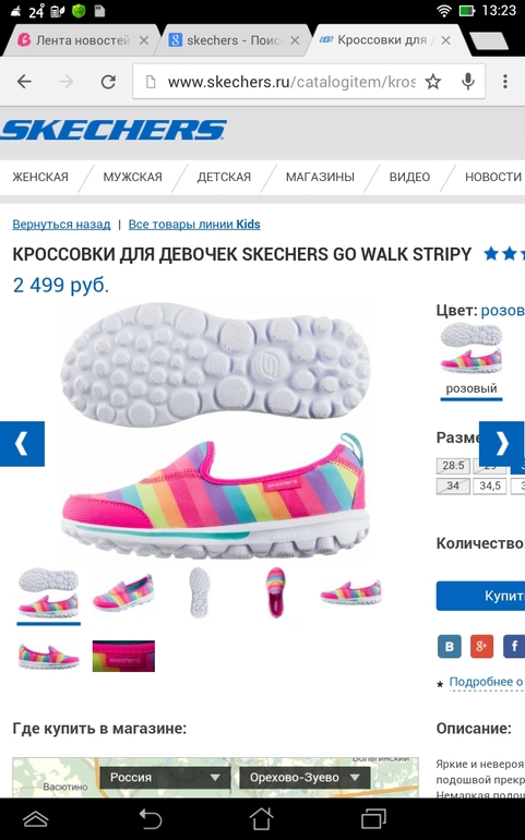 По вашей наводке купила вчера в Спортмастер, оформила самовывоз. На свой 23,5 см взяла 37 детские розовая-радуга! Я восторге, нога как в мягких тапочках, обувь не весомая. Раньше присматривала Sketches взрослые розовые, но они 3199 р стоят, а детские за 1749 прям подарок для меря)))))Спасибо за наводку. Дешевле я не встречала!