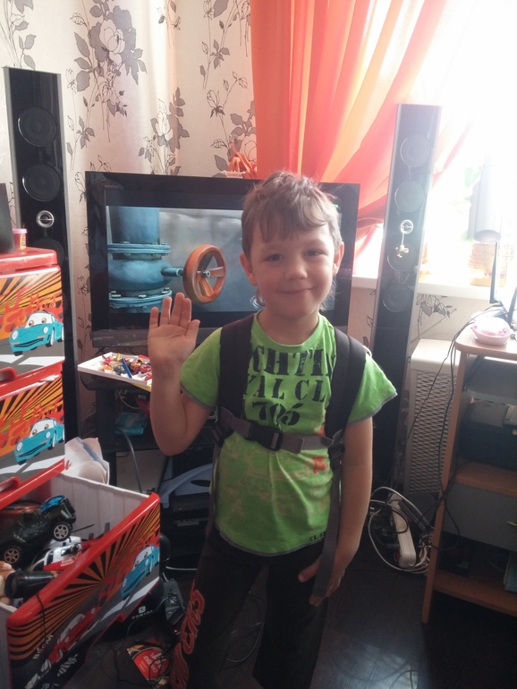 после словесного изливания восторгов сын поместил в рюкзак свой жизненно необходимый скарб, состоящий из роботов, танков и фломастеров, водрузил рюкзак на плечи и ходил с ним до самой ночи, пресекая на корню любую мою попытку избавить его хрупкие плечи от непосильной ноши))))