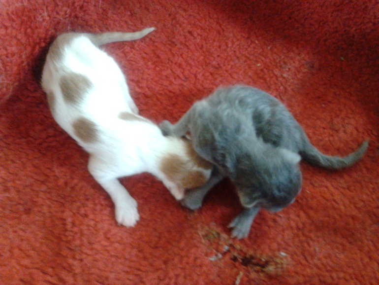 Они ждут своего хозяина (бесплатно)Обе кошечки, одна полностью серенькая, другая белая с красивыми рыжими пятнышками. Цена договорная. Родились ночью 17 августа. Фото подкат