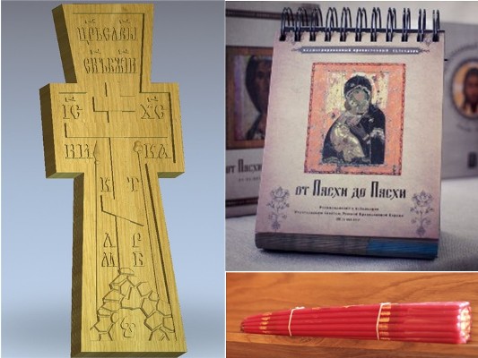 1 место - настольный православный календарь "От Пасхи до Пасхи", большой резной крест из дуба и 33 пасхальные иерусалимские свечи