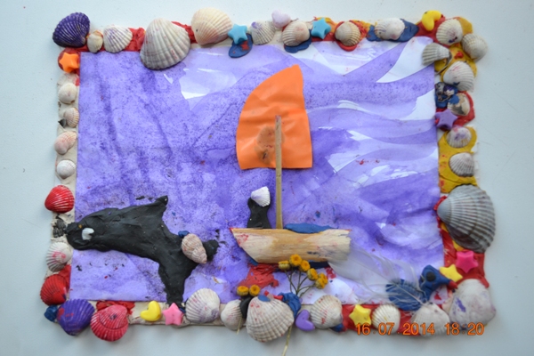 На море мы с Максимкой не скучали. Сделали вот такую поделку на память о наших морских приключениях: