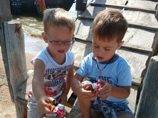 Дальше по карте мост, на море нарисована чайка, которая ест соломку. Вспомнили, что на моту кормили чаек, значит нам туда. На мостике мальчишек ждал сюрприз - по маленькой машинке. Радости не было придела!