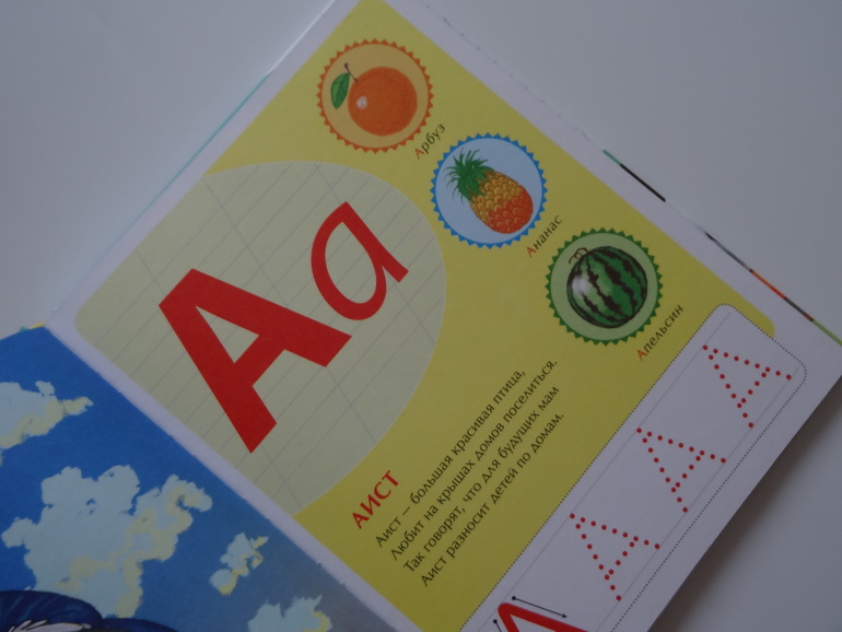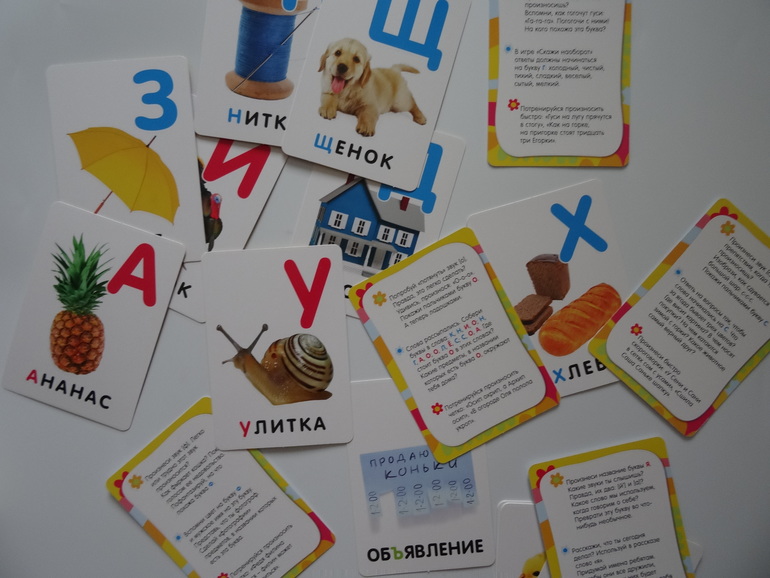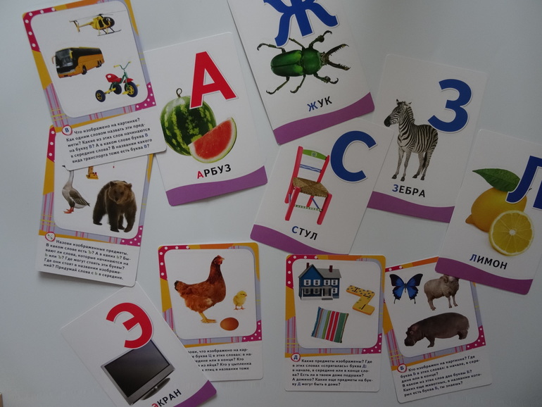Правдоподобные изображения, что большой плюс в наше время. Развивает кругозор и помогает запомнить буквы, естественно. А еще с обратной стороны есть загадки!