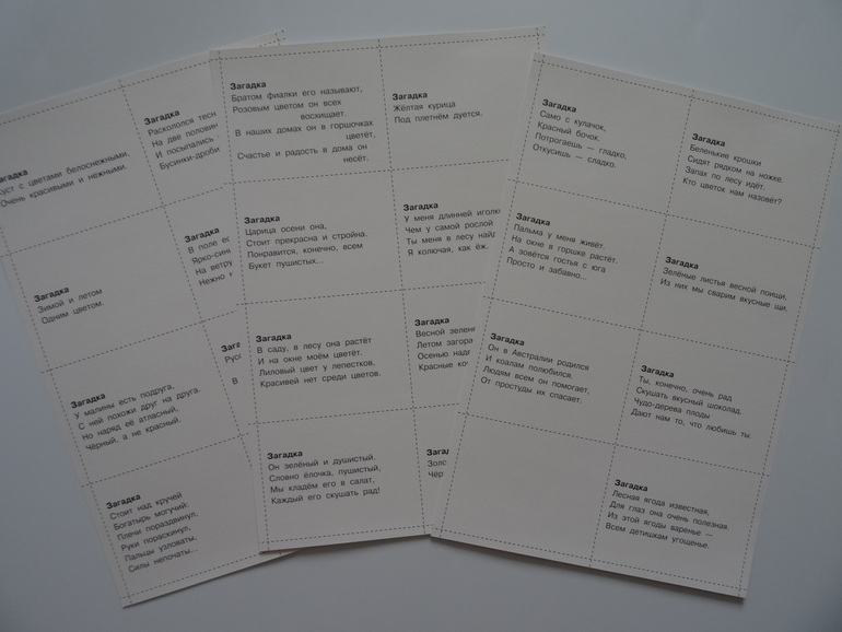 Видите все карточки поделены пополам? Надо найти соответствие между двумя половинками. Все просто, но малышам такое нравится.