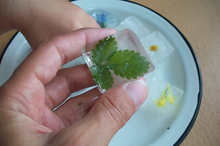 Я сама с интересом изучала эти цветочные льдинки. И сынок всё трогал их, тыкал пальчиками в замерзшие цветы