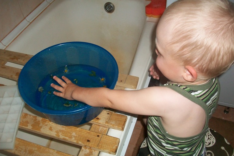 Ну, и поплескаться в воде ручками не забыл - без этого никак, воду мы любим!