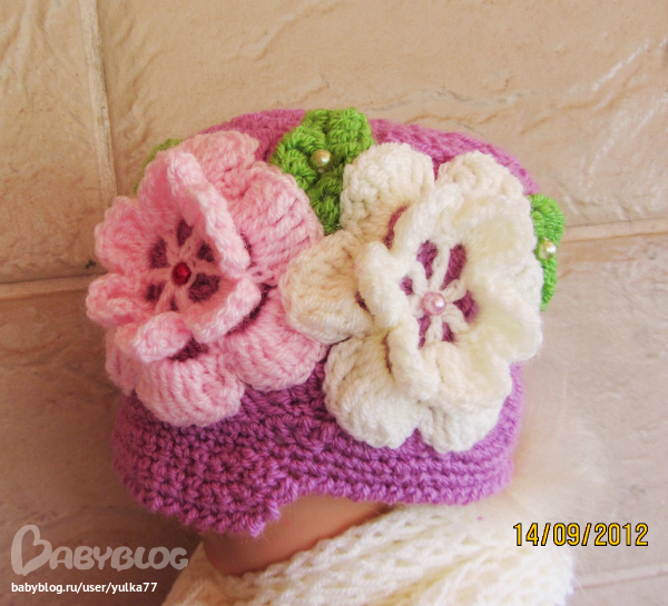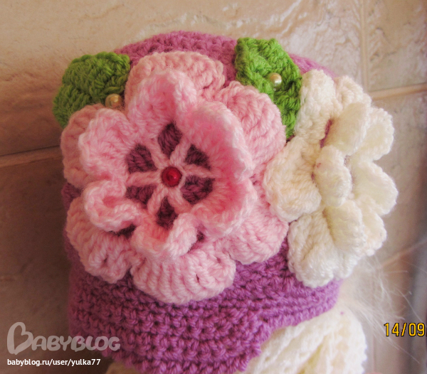 Сочно!!НА верней кепи мне нравятся цветы у ВАс случайно нет схемки??Перерыла много инфо..нашла только описание .Вот со схемой я больше дружу.Спасибо!