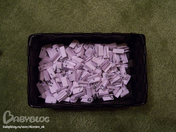 Вчера весь вечер мы с мужм писали и вырезали номерки, ну не нравится мне этот генератор случайных чисел...я по старинке люблю, чтоб все видно было! Честно скажу, видео я вставлять не умею ,поэтому все было запечатлено на фотик)