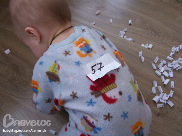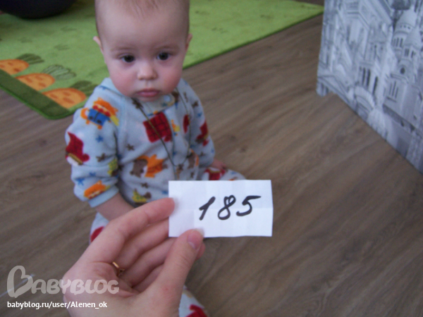 Первый номерок он выбрал довольно быстро! Я думала он все горстями хватать будет, ан нет)))