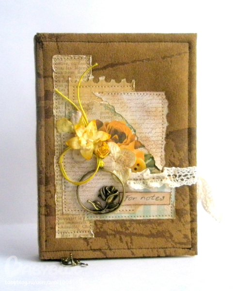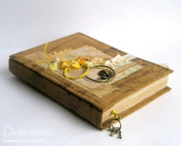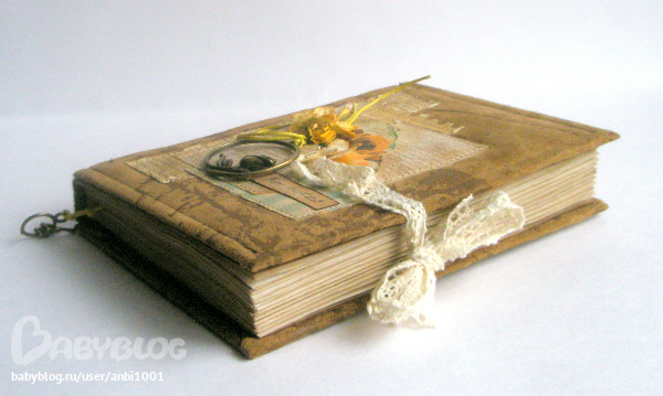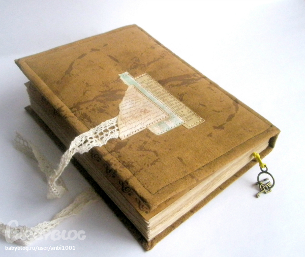 СкрапбукингБлокнот - с нуля, коптский переплёт, формат А6, 100 состареных листов, закладка с подвеской, обложка мягкая из искусственной замши, на завязке.