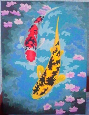 Холст с нанесенным рисунком натянут на деревянную раму ...имеется еще схема в бумажном варианте,краски и кисти