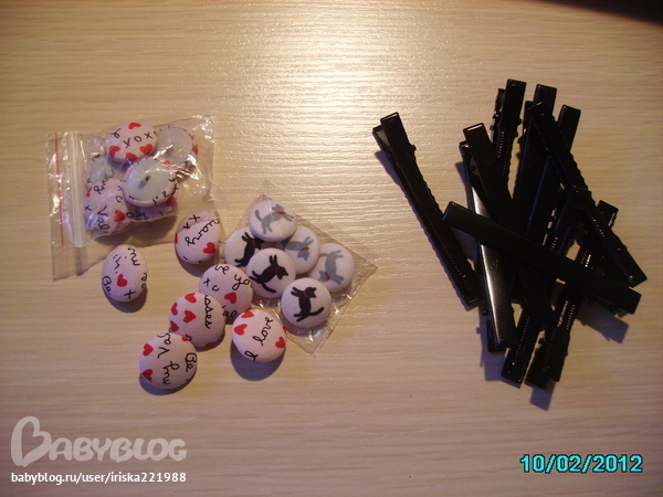 Так же заказывала пуговки.Я от них просто балдею!Как увидела,сразу поняла,что свяжу себе болеро с этими пуговками!А на зажимчиках будут цветочки-канзаши)))
