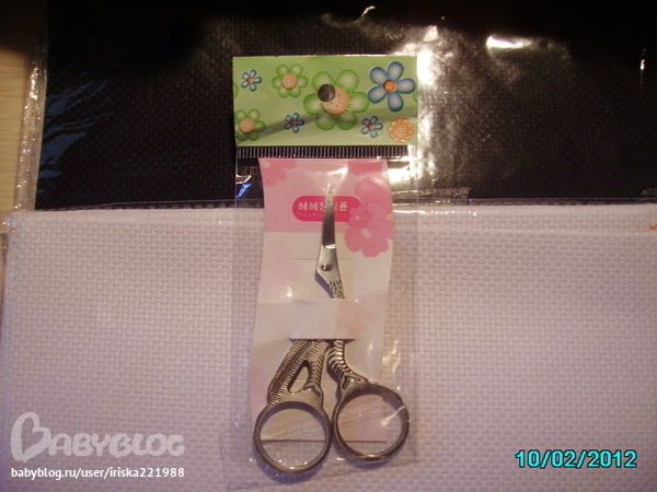 Заказывала так же канву.14 размера,именно для того чтобы менять в наборах.Не нравиться мне слишком крупная.А черную у нас в городе вообще не найдешь.А вот ножнички такие Машуля мне в подарочек положила.За что ей огромной спасибо!!!