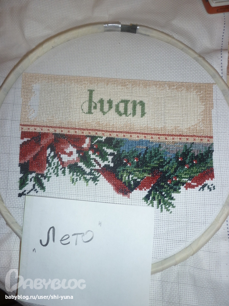 Добрый день! Продолжаю вышивать дизайн от Дима "Санта с леденцом" сапожок. Канва 18
