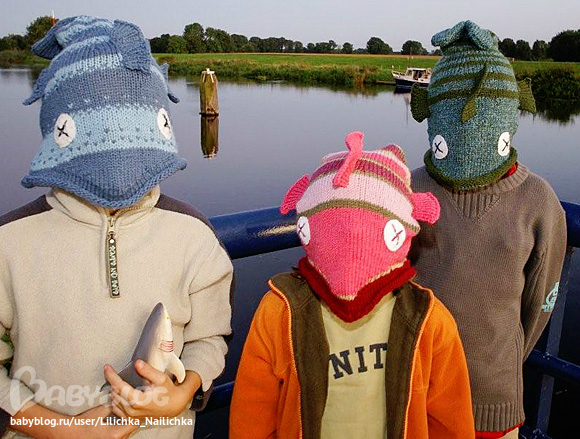 Блин, все дни после твоего коммента ходила и переживала: ну что же я за ведущий онлайн-вязалки-то такой, что даже сама не связала шапку-то?! думаю, вот не скгодня-завтра сяду. села в итоге и обомлела - да я ее, оказывается, давно уже связала!!!=) на стадии плавников и глаз забросила!=) так приятно было готовое "тело" рыбы найти в закромах пряжи=) вот она: единственное, мне не очень нравятся глазки-крестики, и я пока не придумала чем бы их заменить. и после фотосессии этой пришла домой и зацепила в нескольких местах губы, чтобы именно валиком были - так она и на глаза не сползает, и больше на рыбу в итоге похожа=) не могу фотки вставить, может, чуть позже=(