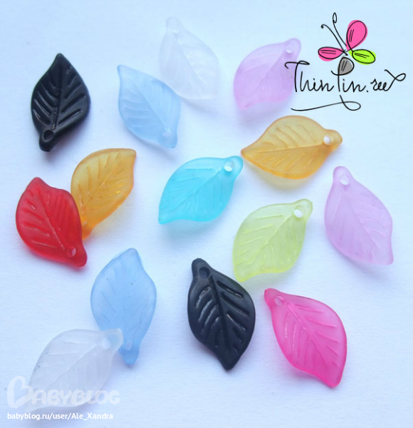 21 Акриловые бусины в форме листочков. Размер 18*11*3 мм. Цена 2 р/шт.