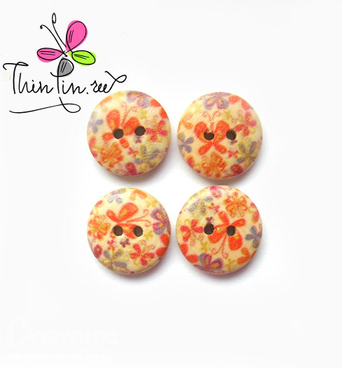 40. Деревянные пуговицы, окрашенные с двух сторон в белый цвет. Поверхность пуговицы декорирована принтом. Диаметр пуговицы 1,5 см. Цена 5,3 р/штука.