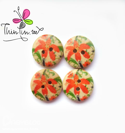 48. Деревянные пуговицы, окрашенные с двух сторон в белый цвет. Поверхность пуговицы декорирована принтом. Диаметр пуговицы 1,5 см. Цена 5,3 р/штука.