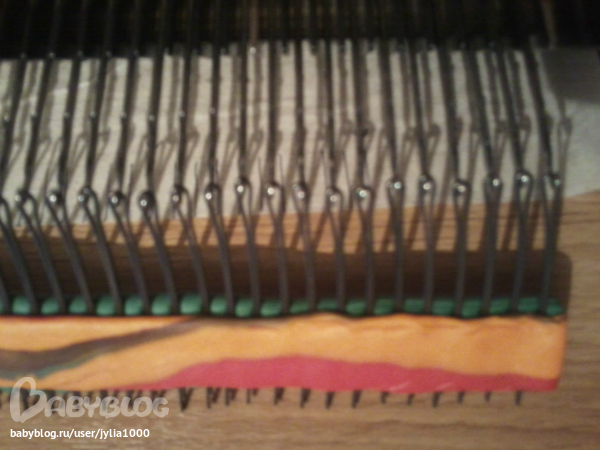 ,я сначала сделала из ободка(знаете есть такие с зубчиками растягиваются)так вот,после того как все склеила(между линеек ободок приклеивала)эта вся конструкция просто незахотела межну платин на иглы пролезть одеться!!((((((я его потом разобрала,линейки оставила..........а мысля -то гложит.............хочется мне сей инструмент иметь!!!!!!ну вот,я его и смастрячила