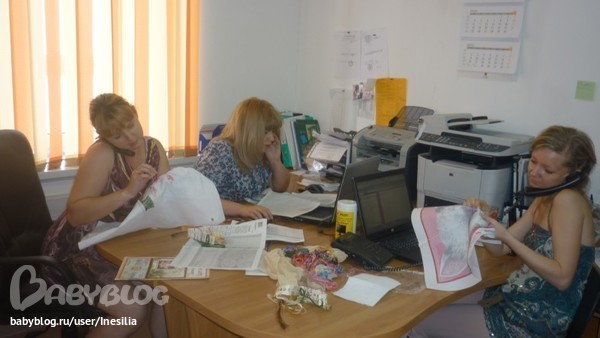 И где только не вышивают наши коллеги :) даже в офисе, с трубкой на плече! Интересно, их начальник тоже вышивает? :)))))))