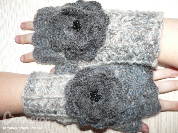 гламурной девушке - коллеге. Из остаточков от этого шарфа http://www.babyblog.ru/community/post/rukodelie/1725039 получились митенки. С минимальными затратами родился эксклюзивный презентик.