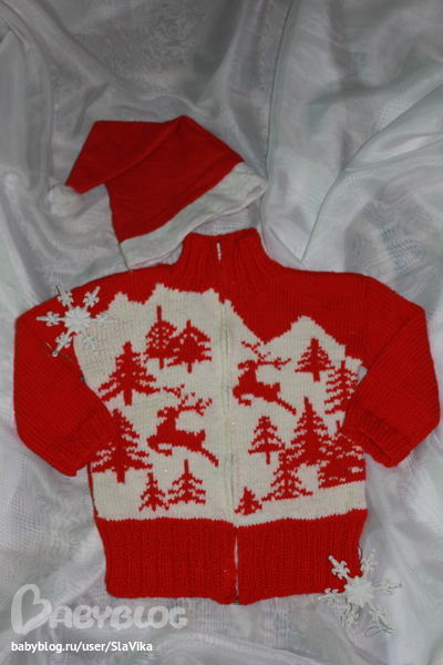 Связала сыну (наконец-то) кофту новогоднюю с оленями, чтобы была такая же, как у родителей))