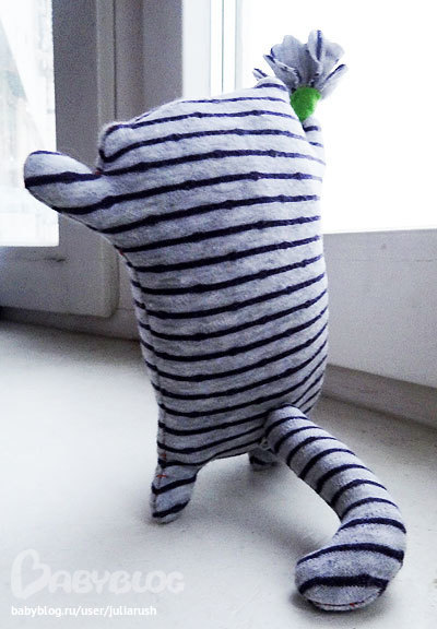 Честно признаться, результатом осталась довольна, правда кот все также падает, еле установила его, вот не знаю, может все-таки проволоку в хвост вшить, или так оставить? Мама сможет поставить его на рабочем столе или в машине просто облокотив на что-нибудь и без проволоки.