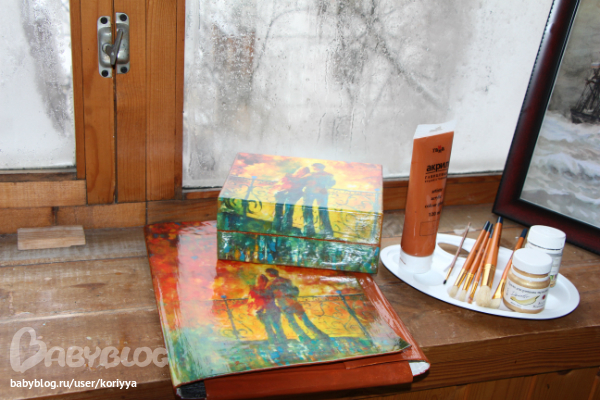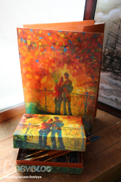 2.Набор влюбленного художника "Пара на мосту"(папка для этюдов и коробка для красок-кистей).