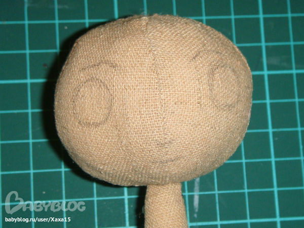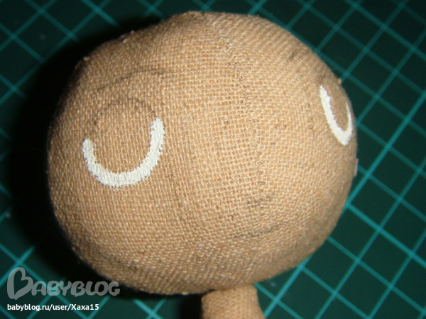 Второй этап: рисуем личико:) Намечаем карандашиком места глаз, носа, рта, бровей. Стараемся метки ставить симметрично:)
