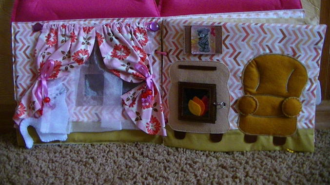 в моих домишках появился пол! Смотрела я на свои книжки-домики и думала, чего же в них не хватает??? И тут меня осенило! Пола не хватает, мебель как будто парит в воздухе...
