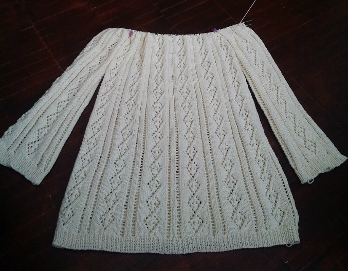 Без единого шва, реглан снизу. Мой первый конкурс по вязанию, моя первая большая вещь.