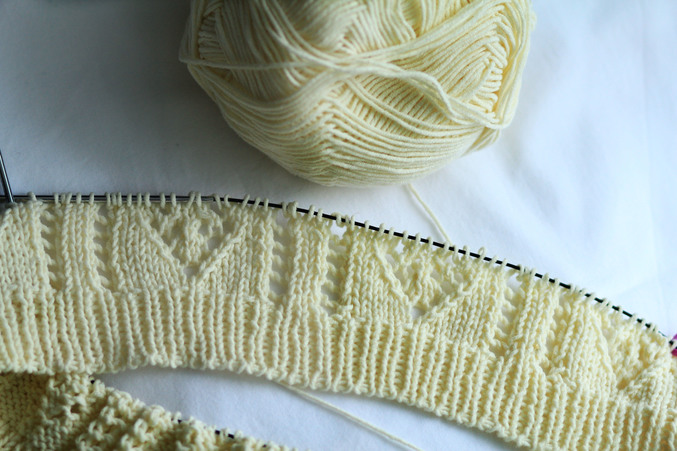 Регланные линии образовывают две петли (одна от рукава, вторая от тушки). С двух сторон от них я делала убавления в каждом нечетном ряду. При этом нужно не забывать следить за рисунком. Он должен равномерно "уходить".