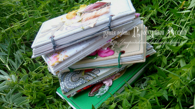 Скрапбукинг75на135мм. все с мягкой текстильной обложечкой. Были заказаны в качестве маленьких подарков.
