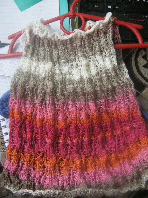 я пока 1 сторону связала и отложила,платье крючком вяжу,ниточки не хватило,заказала в кудели вчера