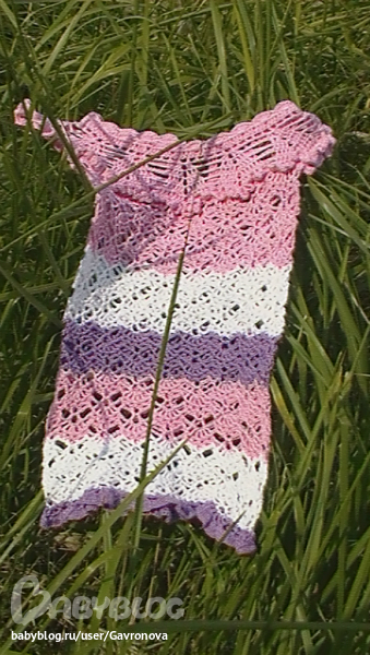 Платье-туничка на рост 70-75 см. Пряжа 100% хлопок. (фото на модели можно увидеть в дневнике у Оксаны) + будет сюрприз для мамы.