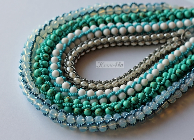Сегодня для затравочки показываю кусочек моих "боёв". Два колье окончательно готово, остальные доделываю.