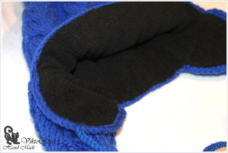 Ушки с завязками дополнительные предложила я сделать,так как шапочка на зиму,а вторые,длинные ушки декоративные.Их не завяжешь