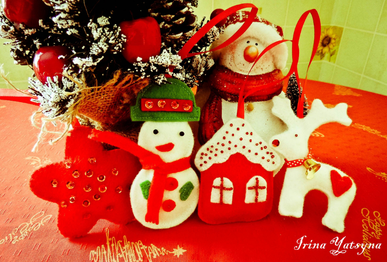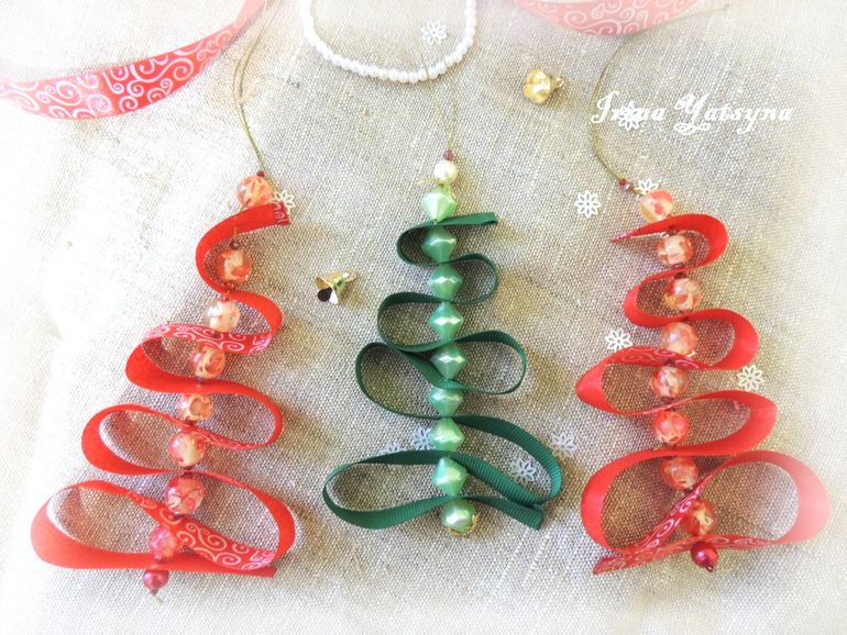 ёлочки зелёные и из ленточек просто прелесть и другие игрушки тоже очень милые!