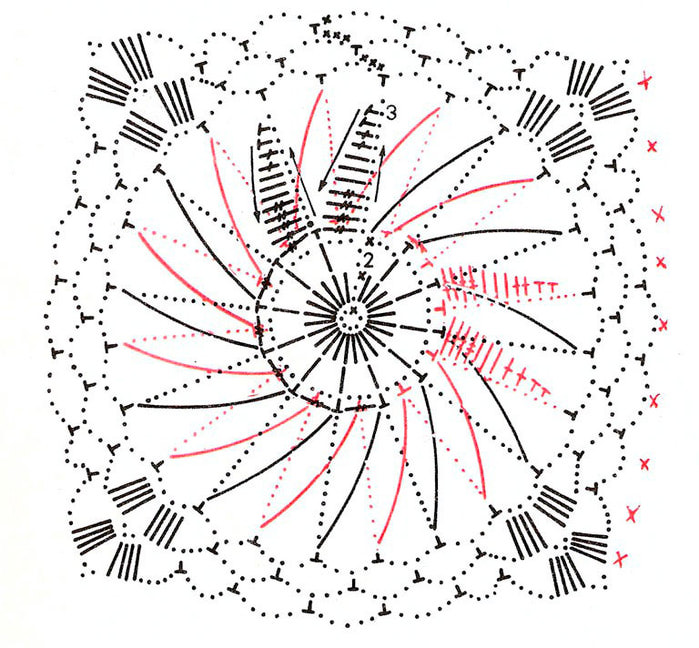 Девочки, никак не могу сообразить, как связать половинку такого мотива. Буду признательна всем откликнувшимся за помощь. Квадратный мотив осилила.