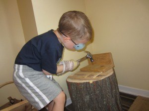 Для этого нужно два одинаковых длинных бруска и четыре коротких (разумеется, одинаковых), гвозди и, конечно же, настоящий молоток. Помогите малышу разметить материалы, чтобы лестница получилась ровная. Теперь бруски нужно сбить гвоздями. На этом этапе маленький мужчина, скорее всего, откажется от помощи.