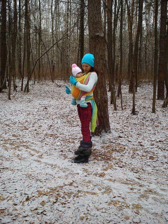 Акции и конкурсыВ Москве в первый день зимы, первый снег, и я, мама Татьяна, дочка Ульяна возрастом в 4 месяца и шарф Little Frog Sunny Agat вышли на прогулку. Свой первый снег Улька бессовестно проспала. Но это не помешает нам продемонстрировать слингостиль. Это наш второй образ.В тренде Цветотерапия и Вязаные вещи
