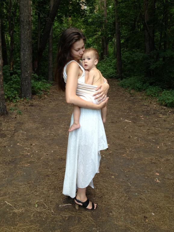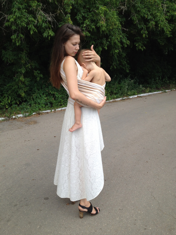 Шарфик я подбирала к платью. Скажу честно, шарфики мне полюбились недавно и пока что я беру их поносить у подруги, и этот выбрала у нее для конкурса. Слинг-шарф Didymos волны браун-натур, он идеально подходит к платью, отражает наше настроение и наше спокойствие. Шарф достаточно продуваем для лета, рыхлый. И очень мягко ложится на плечи.