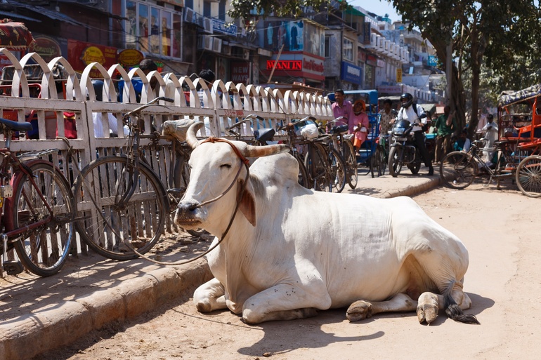 Пока шли от метро к храму, встретили прекрасных коровок на улице. Вообще в Дели их не так много, как в других городах: