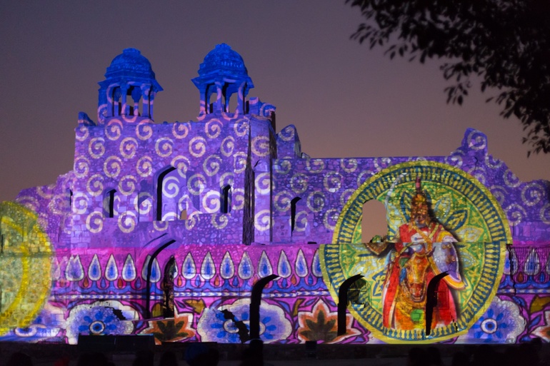 Крепость Пурана-Кила. Мы приехали туда, когда уже просто на осмотр не впускали, потому что приближалось время ежевечернего светового шоу. На хинди начало в 7 вечера, на английском - в 8. Мы решили не ждать час и пошли на хинди=))) Суть была и так ясна по картинкам, вкратце: крепость была 4 раза разрушена в разных войнах и заново отстроена. Оооочень красиво!!!! Я каждую секунду вскакивала и фотографировала, а муж с меня смеялся))) Зрелище действительно очень впечатляющее! Подобные шоу проводятся практически в каждой крепости, так что очень рекомендую посетить!