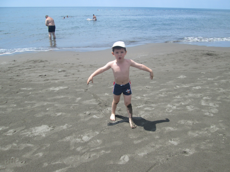 Вот где детю раздолье) Песок базальтовый, очень нежный, мягкий, только цвет не желтый, а серый, поэтому ощущение, что все грязные)