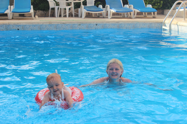 Еще по поводу подгузов - в бассейн надевали либеро для плавания, хорошие, но надо потом сразу снимать, они набирают в себя воду. Иногда купали в плавках, но недолго, а то мало ли конфуз случится)) Купались в основном в бассейне, нам так было удобнее, да и сразу потом можно в душ и домой.