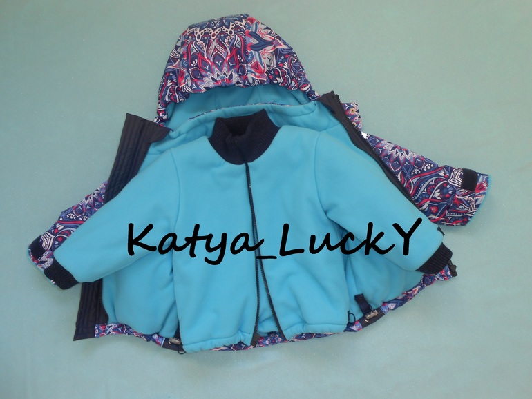 Система курток. Небольшой совет, кто возьмется шить такие куртки: не переборщите с утеплителем и подкладом, иначе, носить все вместе будет неудобно. В идеале, один слой, соприкасающийся с другим должен быть гладким. В данной работе мы шили на годовасика и дополнительные мягкие слои легко компенсируются доп.объемом, если шьете для более активных деток, то учитывайте состав курток. Чтобы встегивающаяся куртка не сковывала движения.