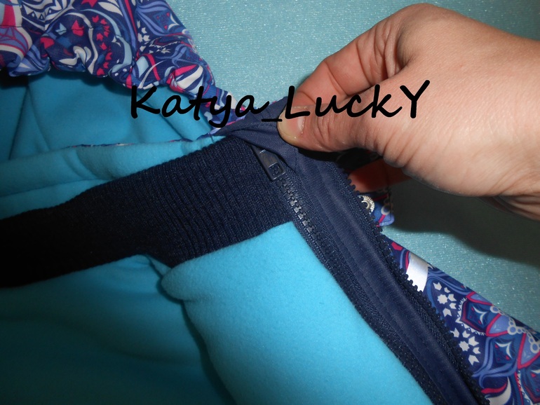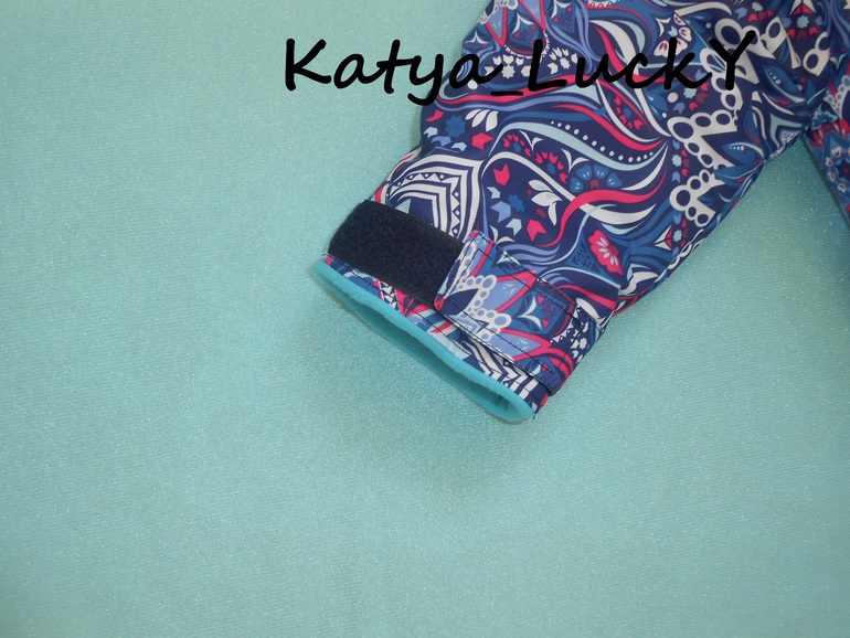 Для удобного одевания варежек на малюсенькие ручки и учитывая, что внутрення куртка имеет манжет-резинку, рукав сделан прямой, внизу расширенный, фиксируется патой на липучке. Мне очень понравилось на практике рукава с патой, у сына на комбезе так сделала, удобно одевать, удобно фиксировать ширину, любые варежки поверх можно одеть, либо внутрь и плотно зафиксировать.