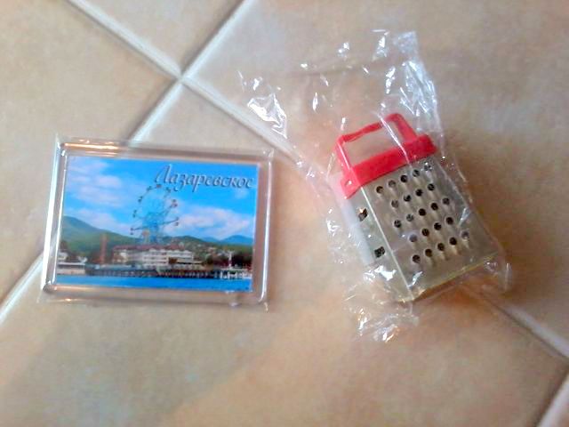 Также в посылочке мы нашли магнитик с видами п. Лазаревское (одно из наших любимых мест отдыха, хотим всё повторить поездку туда, может еще и увидимся с тобой, Наташа, воочию)))) и супер-маленькую тёрочку!